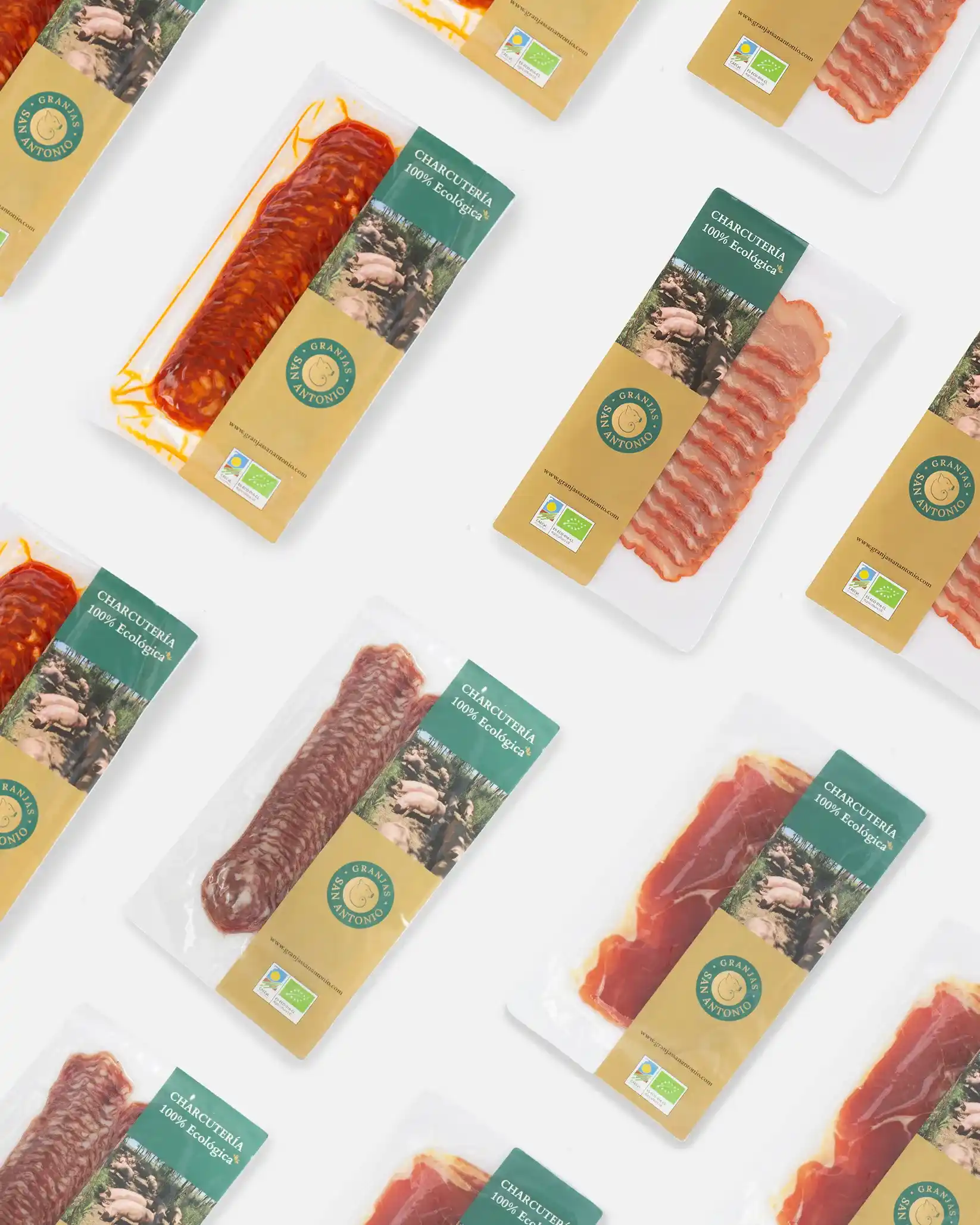 | Producción ecológica | 3 Uds. Salchichón Extra Lonchas (100 gr.), 3 Uds. Chorizo Extra Lonchas (100 gr.), 3 Uds. Lomo Extra Lonchas (100 gr.) y 3 Uds. Jamón Serrano Extra Lonchas (100 gr.) de cerdo ecológico. |
