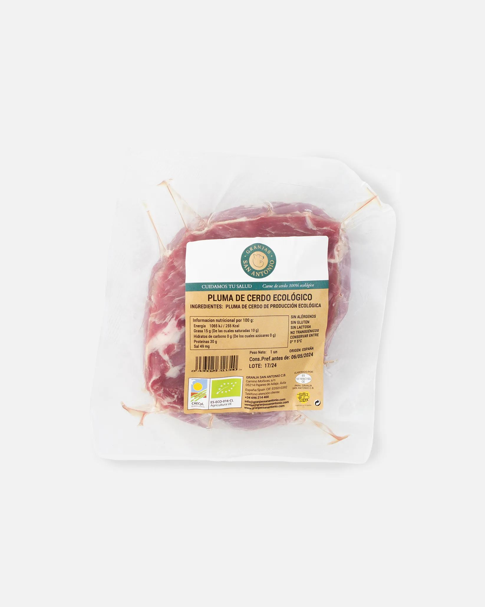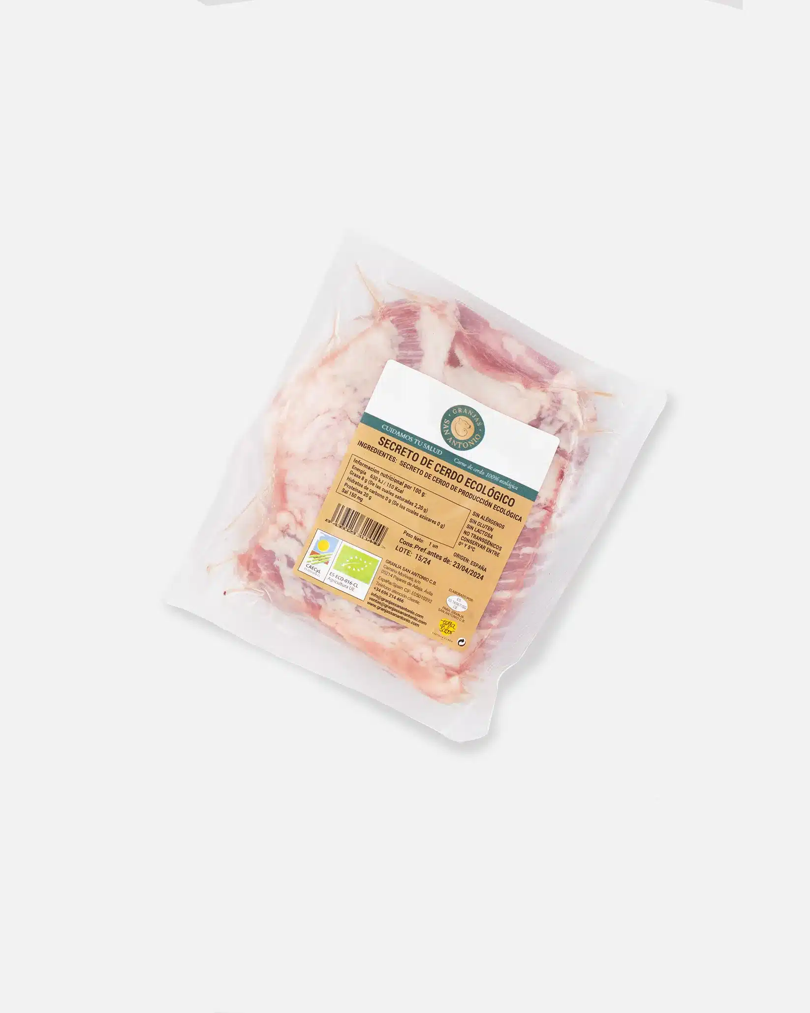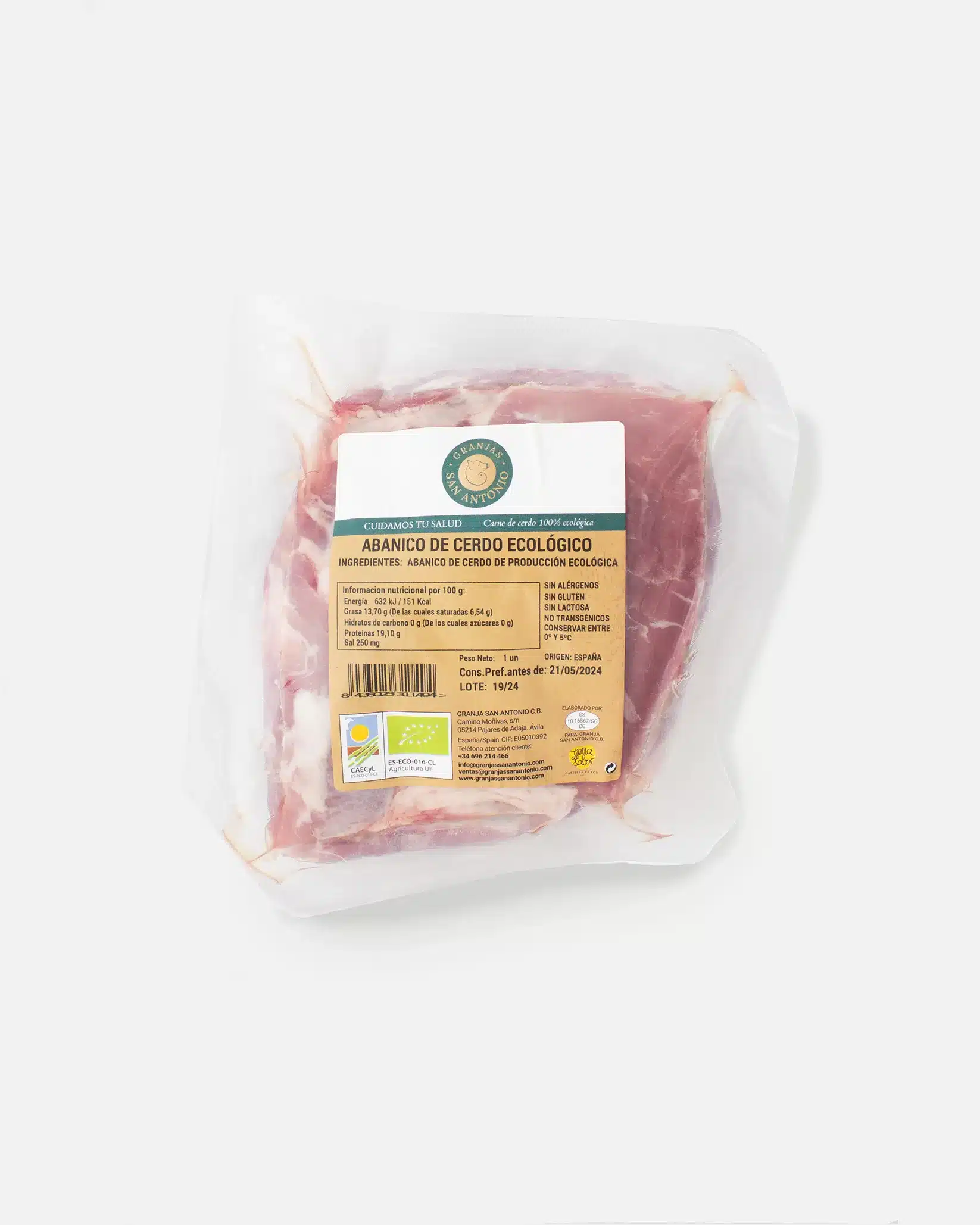 | Producción ecológica | 1 Abanico (500 gr.), 1 Lagarto (500 gr.), 1 Secreto (500 gr.), 1 Presa (500 gr.), 1 Pluma (500 gr.) y 1 Solomillo (500 gr.) de cerdo ecológico. |