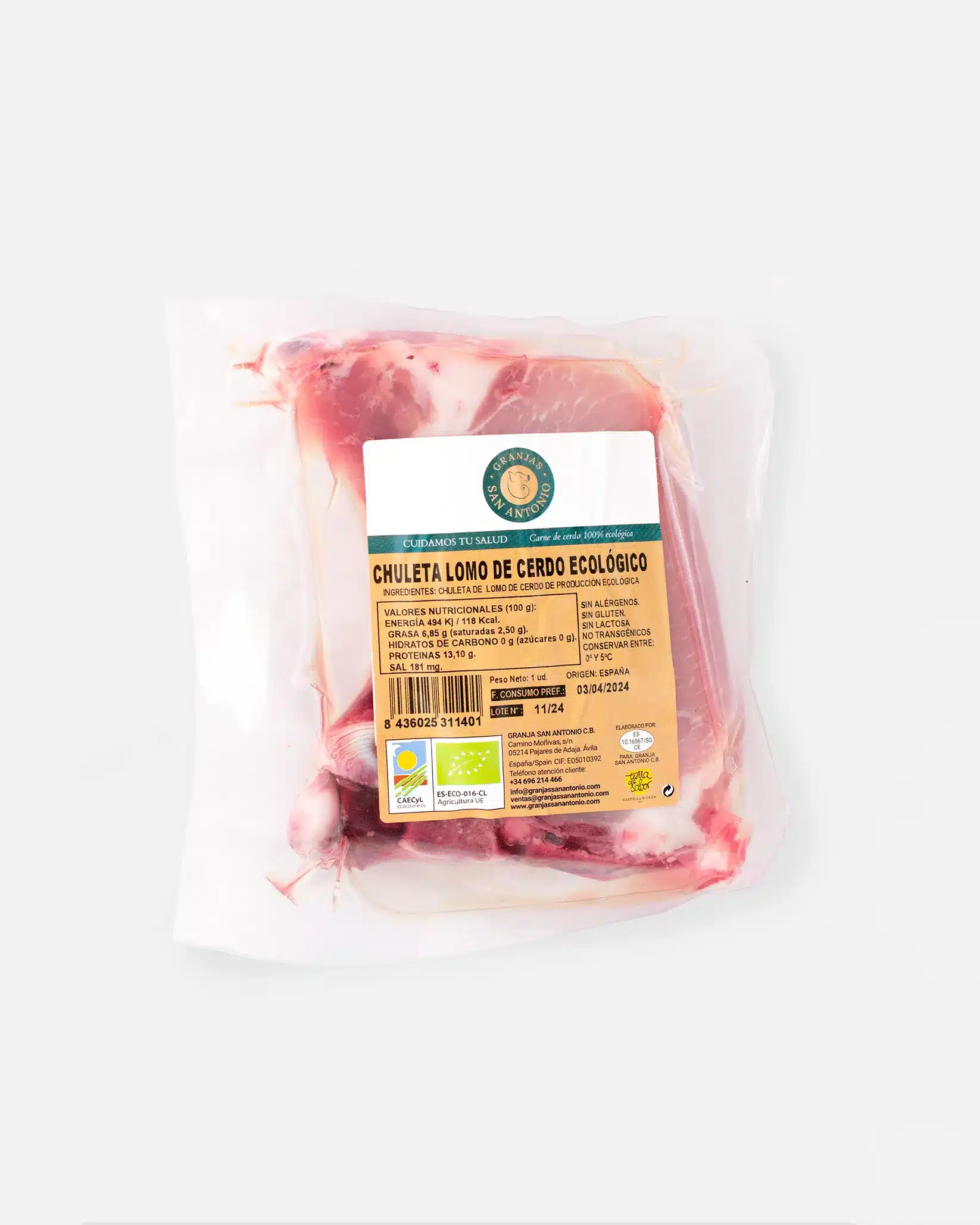 | Producción ecológica | Chuletas de lomo de cerdo ecológico. |