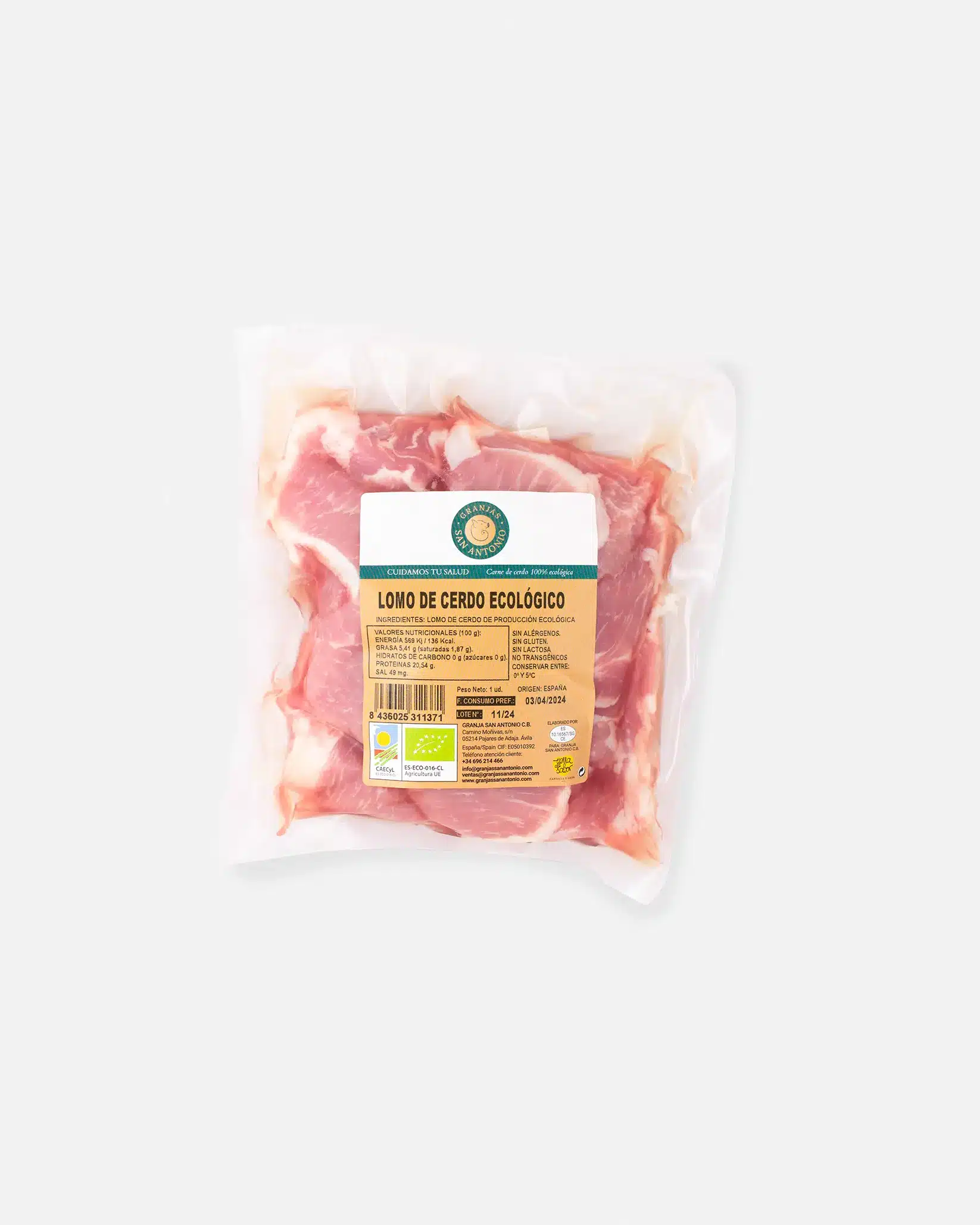 | Producción ecológica | Lomo de cerdo ecológico. |
