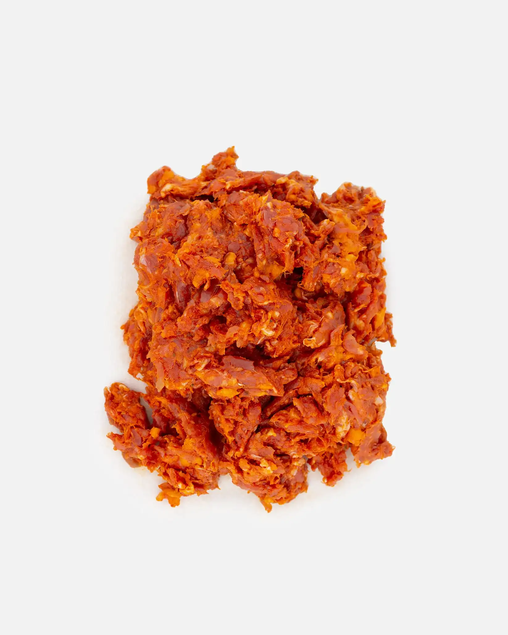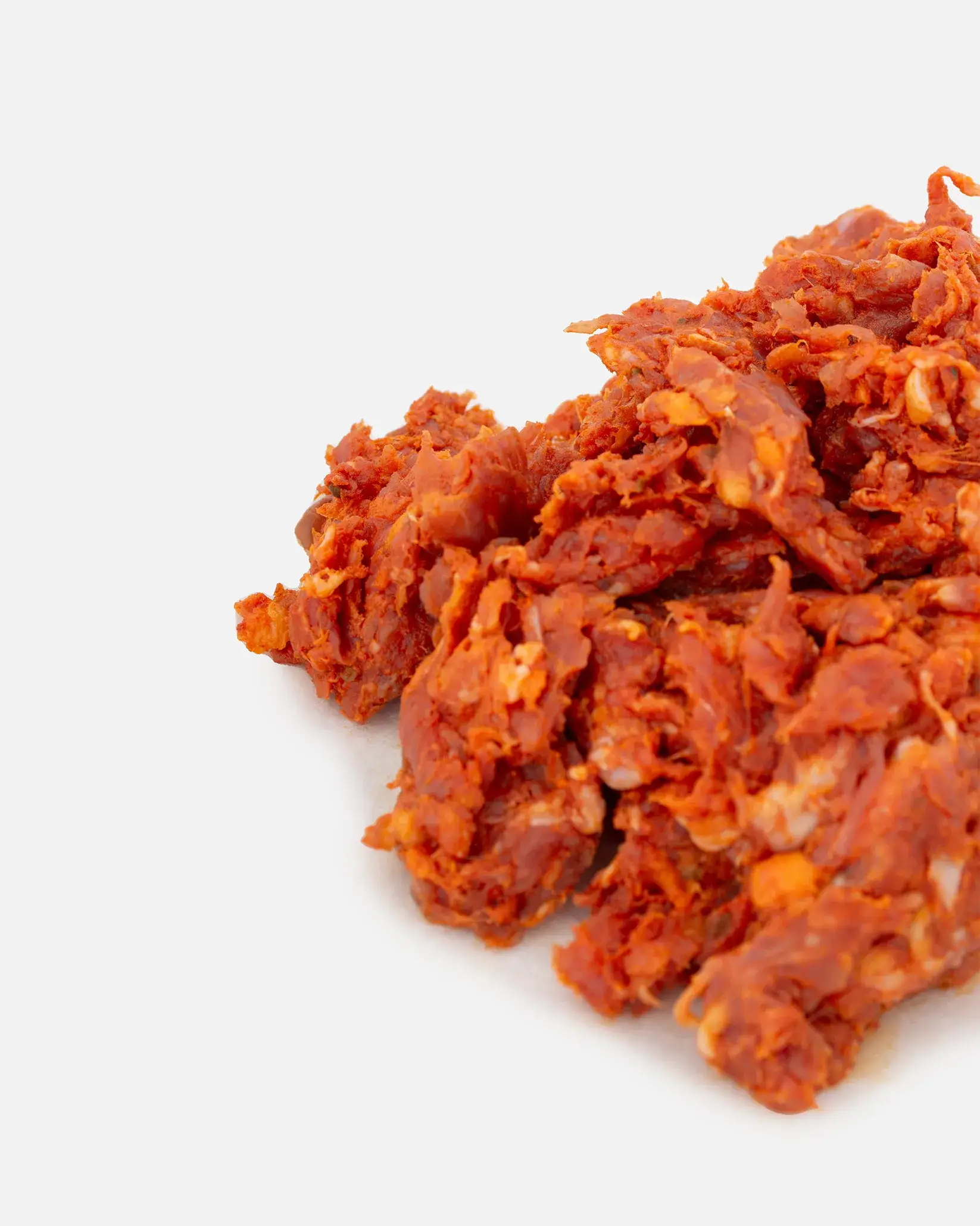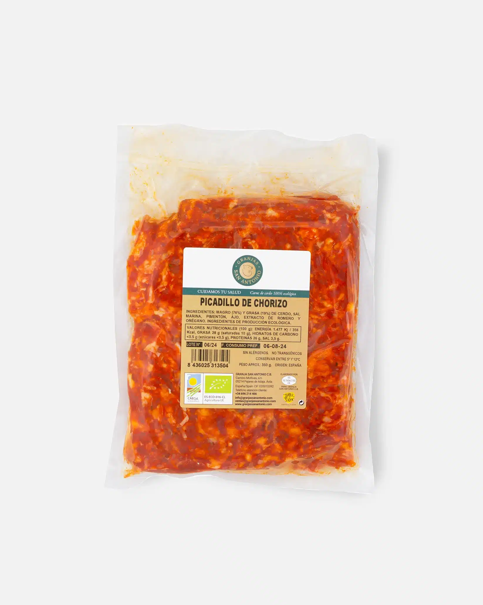 El «Picadillo de Chorizo Ecológico» es una revolución en la cocina tradicional, combinando el rico sabor del chorizo con la practicidad de un ingrediente versátil para cocinar. Este producto, elaborado con carne de cerdo de la más alta calidad proveniente de granjas ecológicas, está aderezado con una mezcla perfecta de especias naturales, ofreciendo una explosión de sabor en cada bocado. Es ideal para quienes buscan añadir un toque especial y auténtico a sus platos, desde tortillas hasta sofritos, sin comprometer los valores de una alimentación responsable y sostenible.