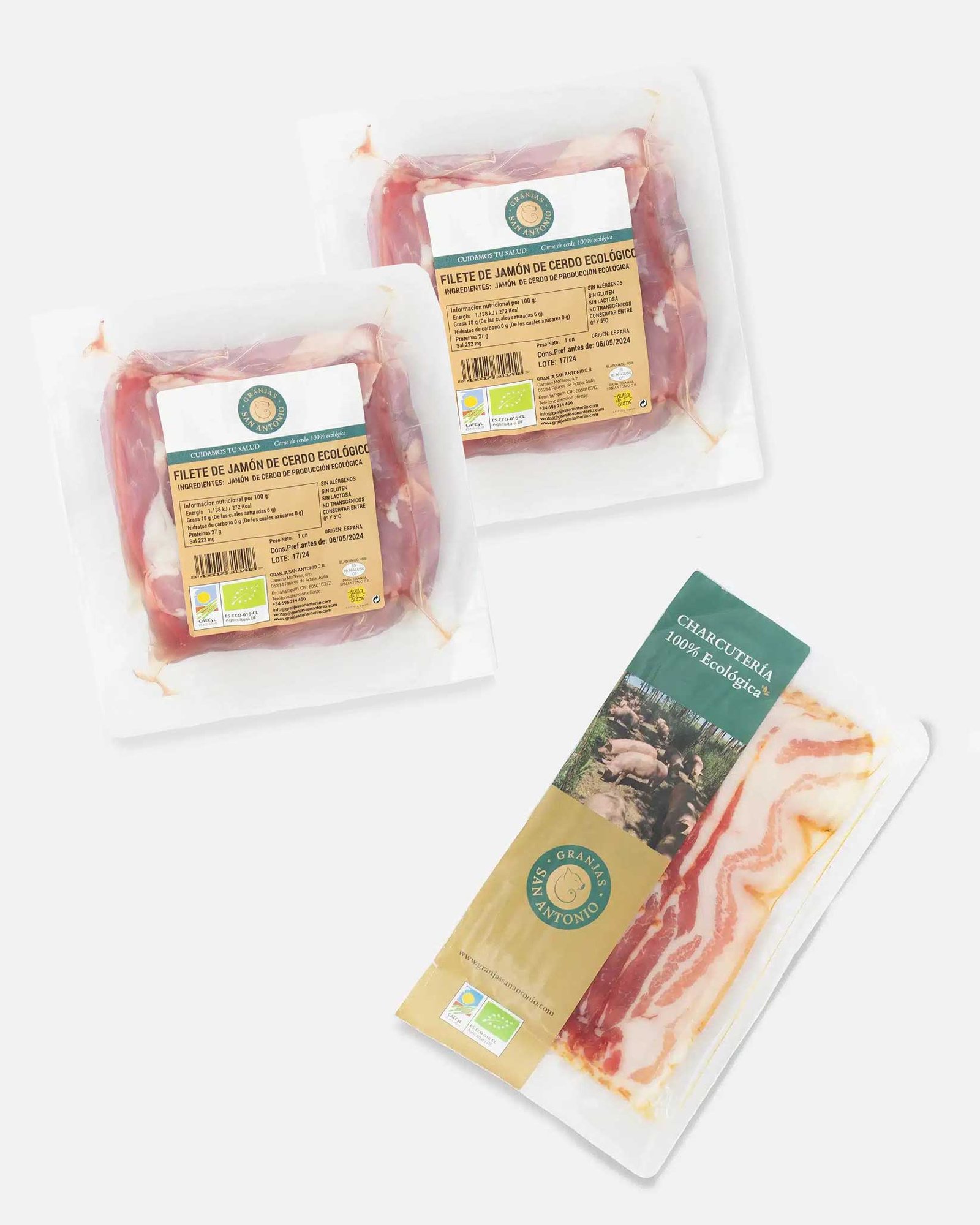 | Producción ecológica | Filetes Jamón (1 Kg.) y Bacon Lonchas (100 grs.) de cerdo ecológico. |