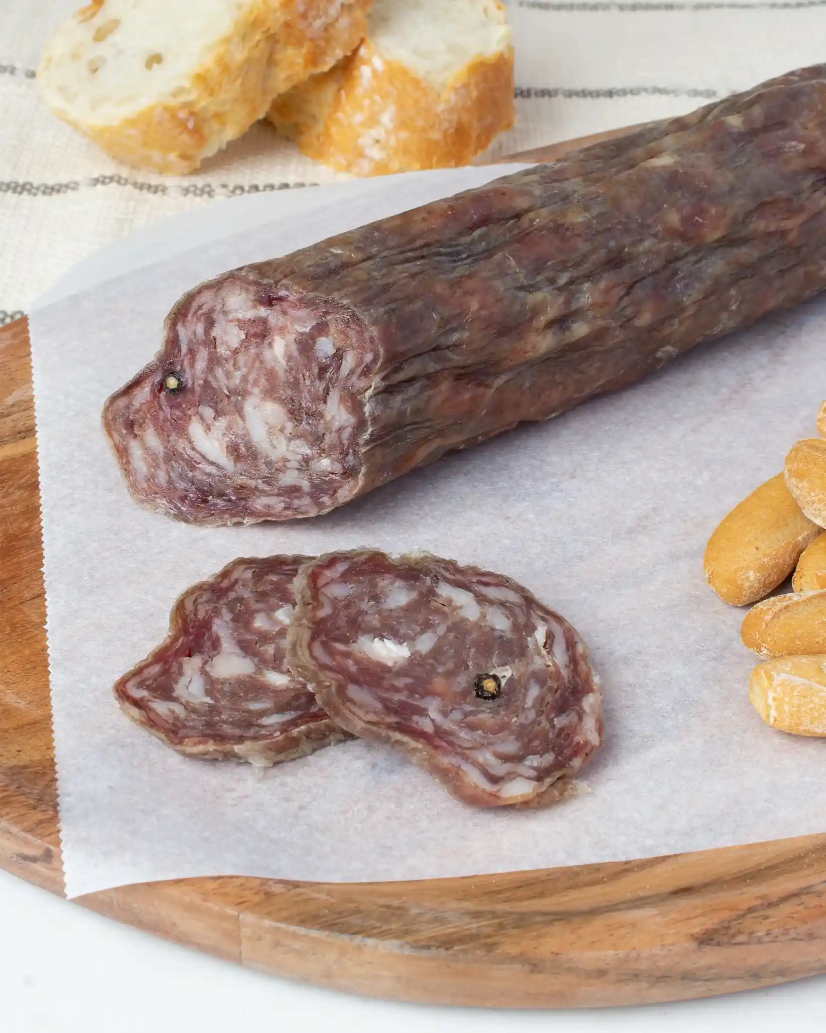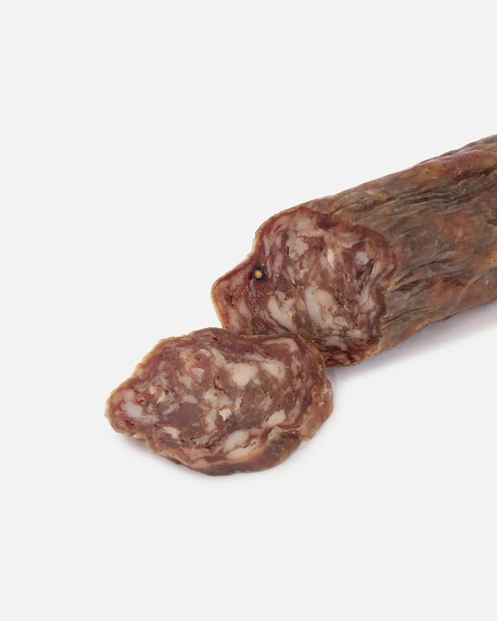Ingredientes Magro y grasa de cerdo, pimienta molida y en grano de producción ecológica y sal marina.